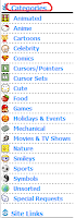 Daha sonra http://www.cursors-4u.com/ adresine girerek sol taraftaki catagorilere göre istediğimiz imleci seçiyoruz.